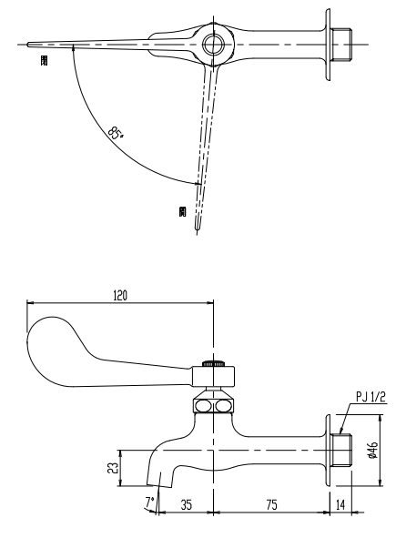 レバー式胴長横水栓