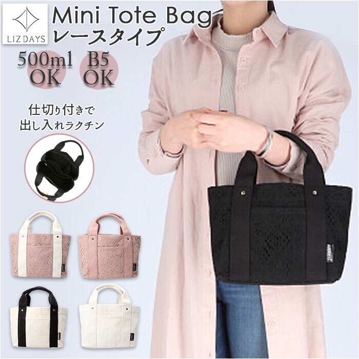 商品名 | LIZDAYS 仕切り付きミニトートバッグ レースタイプ |
