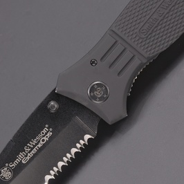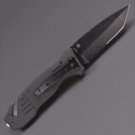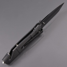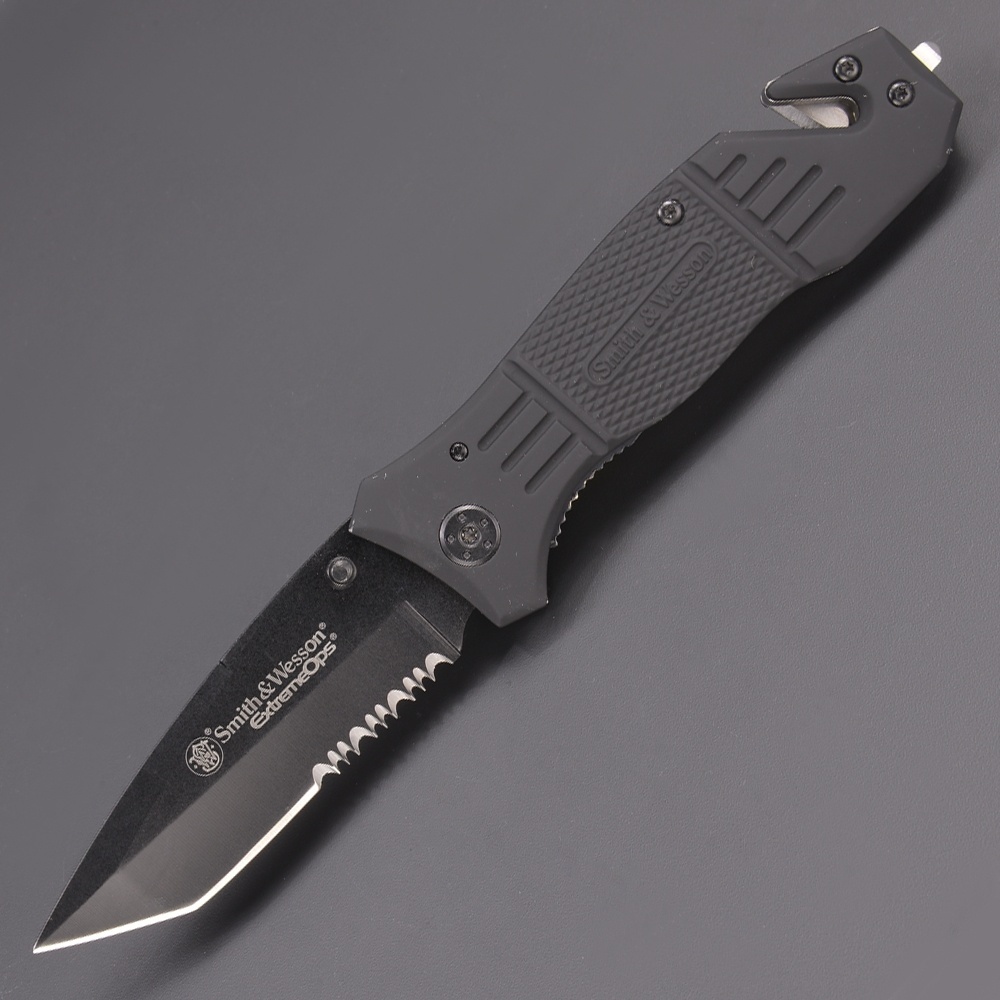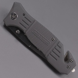 S&Wのファーストレスポンス・フォルダー ナイフです。コンボエッジのドロップポイントナイフの他、ラインカッターとウインドウブレーカーを備えており運転中の事故でドアが開かない、シートベルトが外れないなどの緊急を要する場面で活躍してくれます。