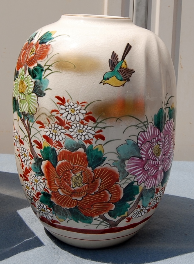 九谷 花瓶 文翠:作 色絵 花鳥文