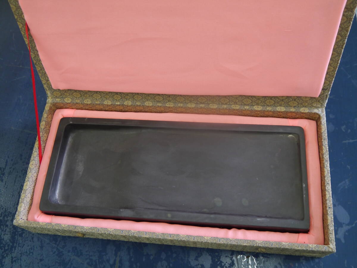P2406H1 古硯 眼有 長方 希少 横12㎝ 縦30cm 厚さ3.5cm 本体重量240g