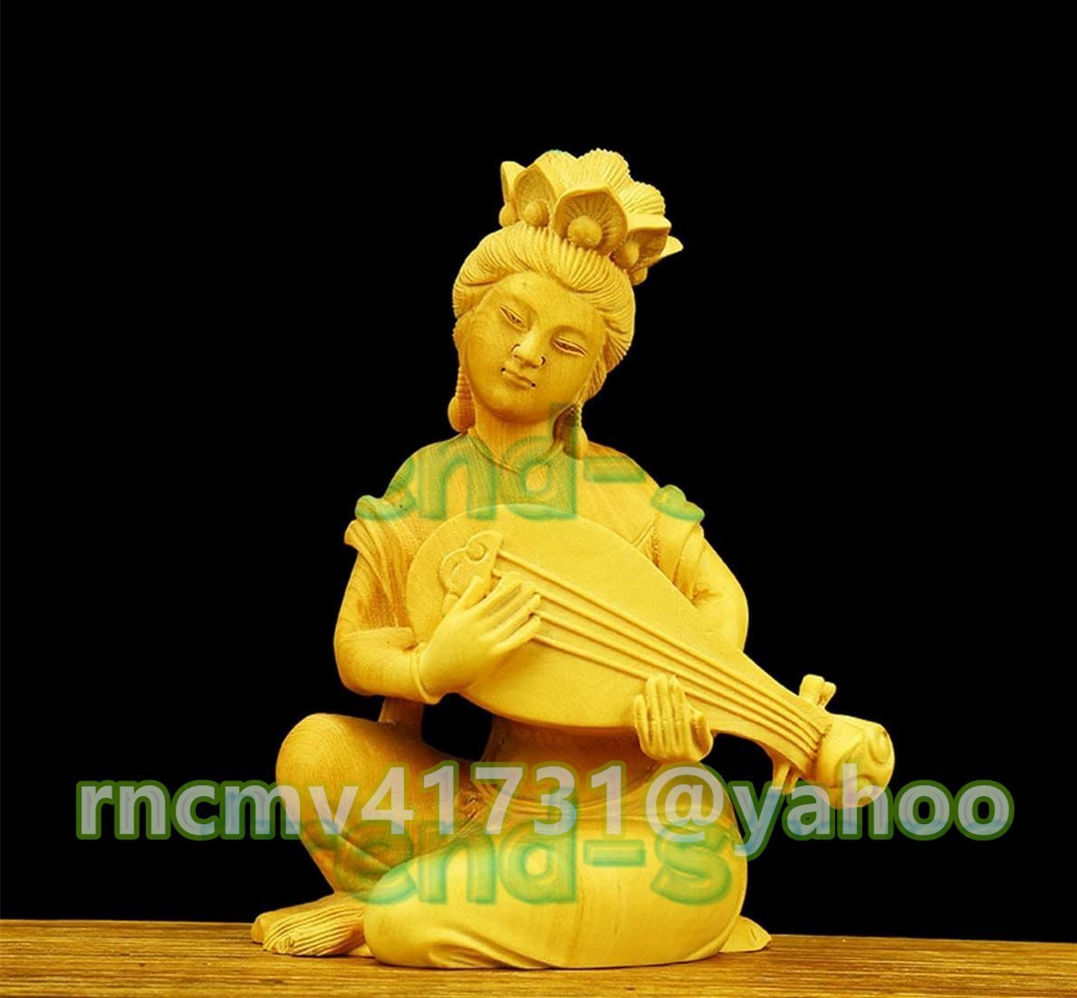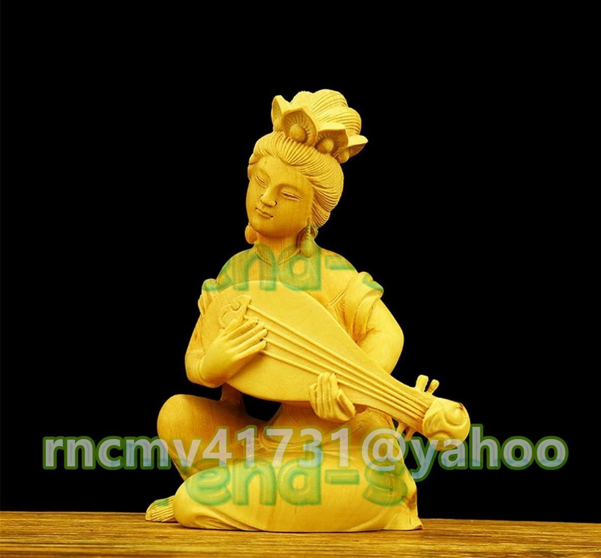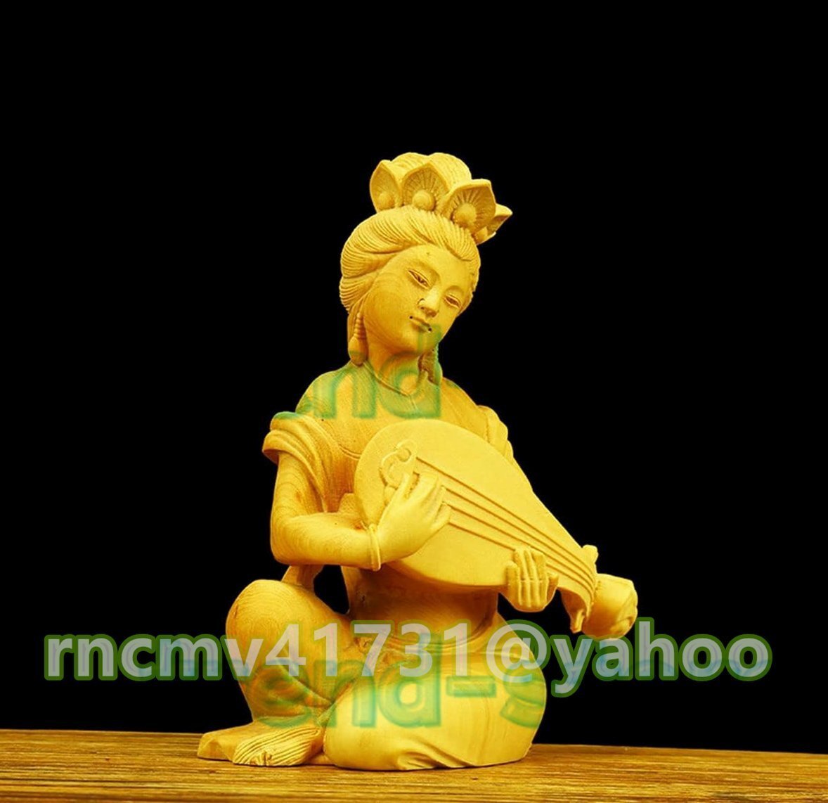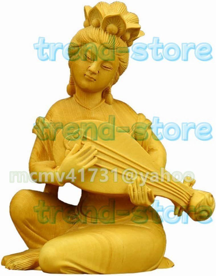 木彫りの仏像 開運七福神 弁財天 高級天然ツゲ木彫り_仏像 置物 辨財天 仏像 木彫り 七福神 美術品 木製仏像
