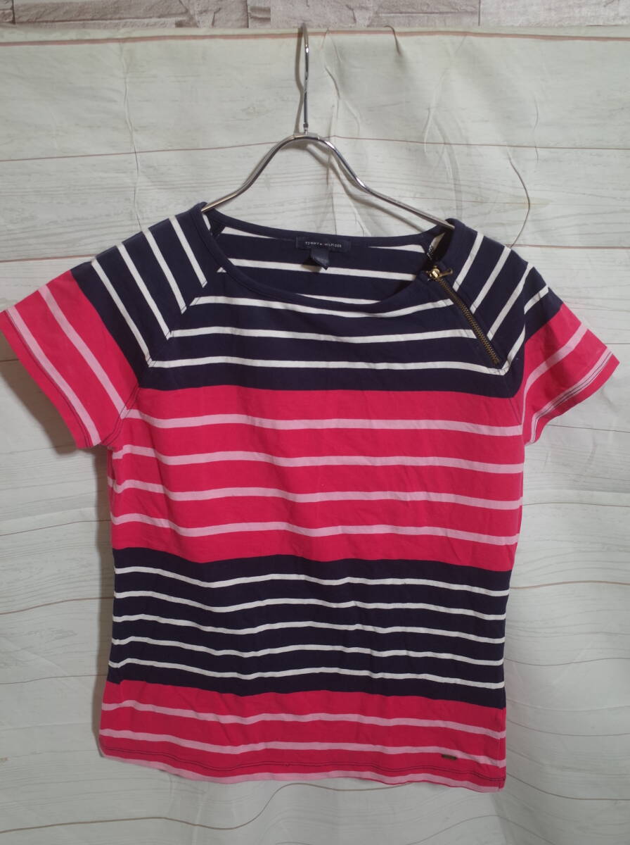 レディース pk278 TOMMY HILFIGER トミーヒルフィガー ボーダー 半袖Tシャツ M ピンク系 カットソー