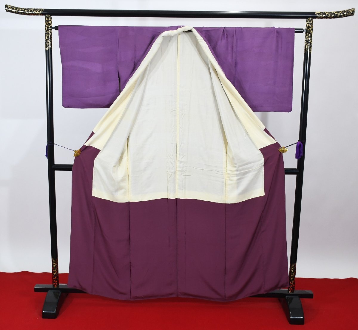 コメント | 衽、前身頃、衿、胸付近、裏地等にシミ汚れがあります。新品ではありませんので、中古品という扱いです。少したたみジワがある場合がございます。ご了承の上、ご入札をよろしくお願いいたします。 |