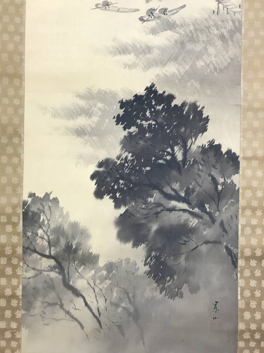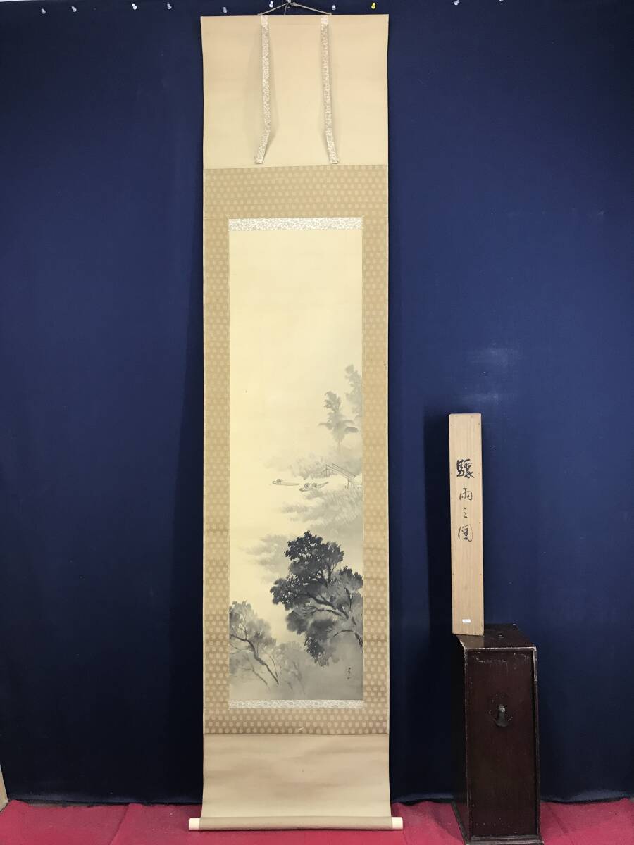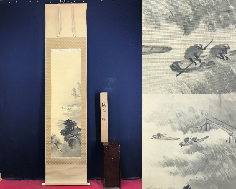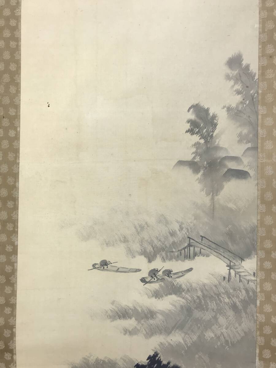 真作/立脇泰山/漁舟山水図/山水図/掛軸☆宝船☆AF-878