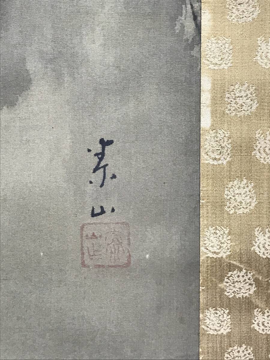 【作品状態】 本紙は絹本肉筆です。本紙は薄汚れ、全体に汚れシミあります。表装は絹表装で、天地に薄汚れあります。