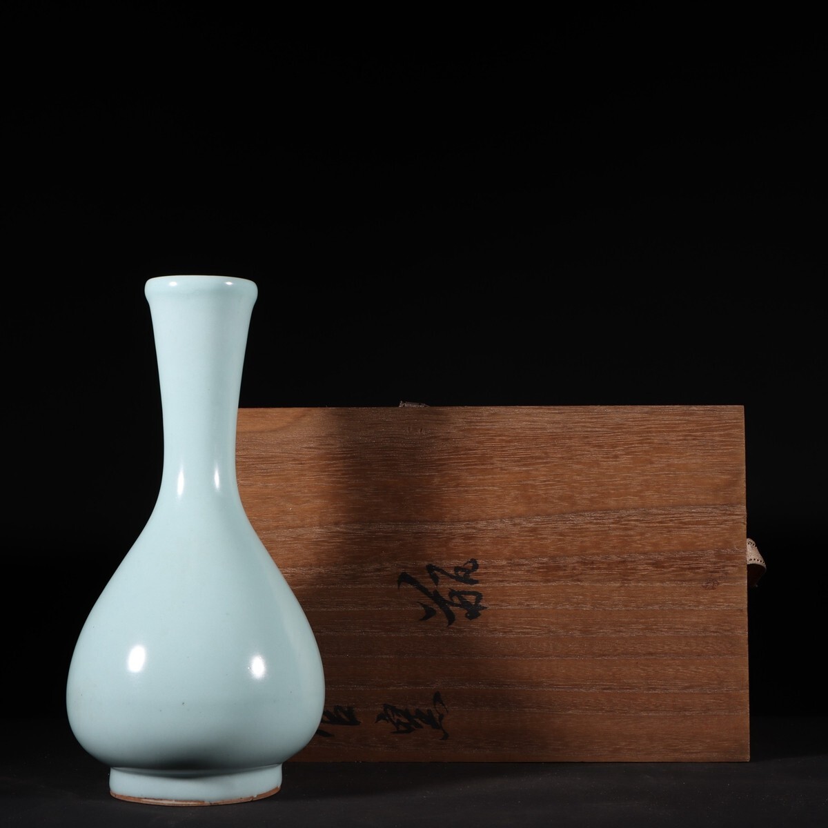 宋代 官窯 陶磁器 粉青釉膽瓶【仁】染付 置物擺件 古賞物 古美術 蔵出