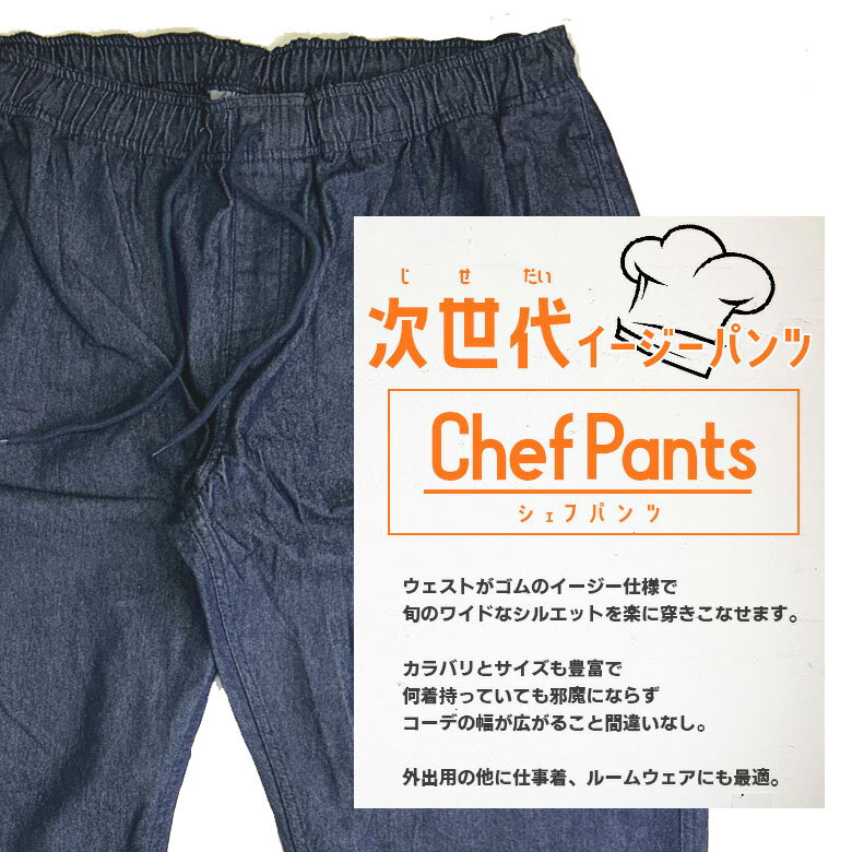 シェフパンツ/ワークパンツ/イージーパンツ/無地/コットン/ツイルチノ/ライトデニム/