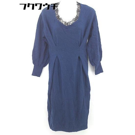 ◇ NINE ナイン アンゴラ混 長袖 膝下丈 ニット ワンピース サイズF ブルー系 レディース