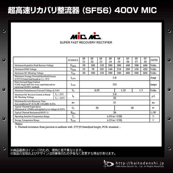 | 超高速リカバリ整流器 (SF56) 400V MIC | 10個 |