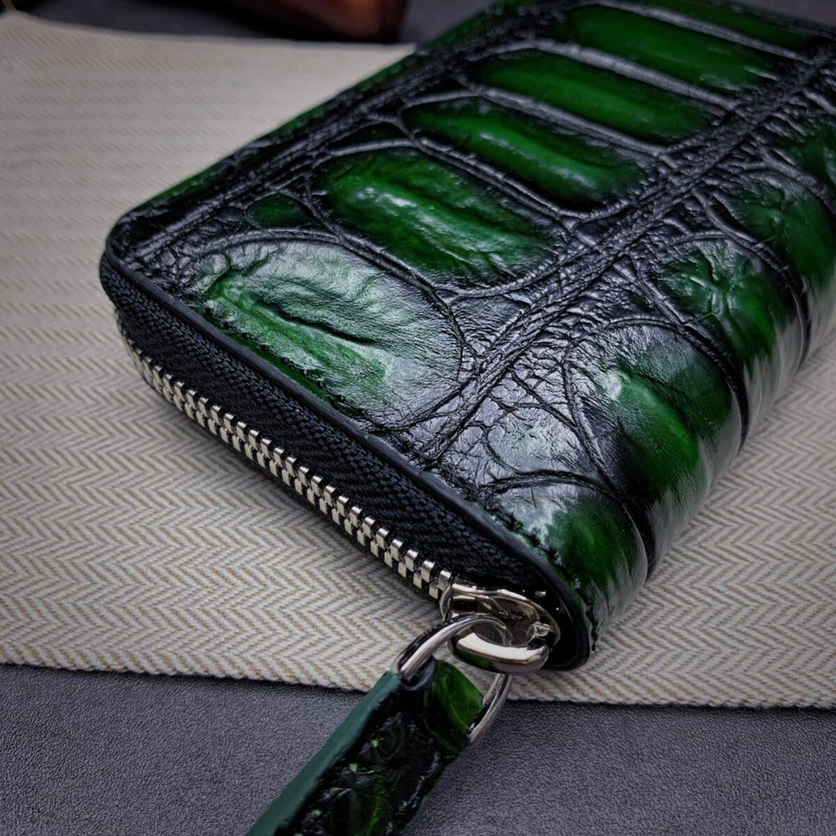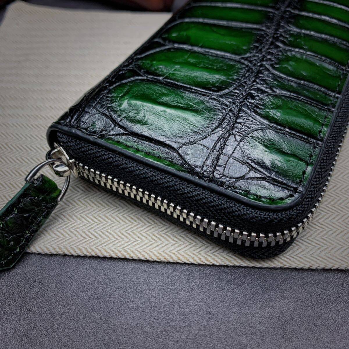 安心国内発送!本物ワニの背革を使用した多機能ファスナー財布です。