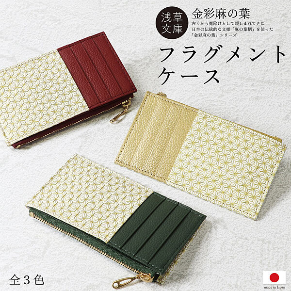 ◆浅草文庫 フラグメントケース フラグメントケースとは、小さなファスナーポケットに 数枚分のカードポケットが付いたコンパクトなお財布 キャッシュレスな今にぴったりな小さいバッグにも 楽々入るスマホサイズの商品です。 ■サイズ:約縦7.5×横13×厚さ1.5cm ■重さ:約35g ■仕様 :開閉ファスナー式、内側:オープンポケット×1 外側:オープンポケット×1、カード入れ×4 ◆素材:表側:牛革 内側:レーヨン・牛革 ※こちらの商品はメーカー取り寄せ商品になります 【麻の葉柄】 古くから着物の柄や仏像の装飾に使われてきた 麻の葉柄もともと魔除けの意味がある三角形が 集まってできた柄でより強力な魔除けの力が あると考えられました大切な人へのプレゼント 自分自身のお守りにもおすすめです ◆浅草文庫 白革に重ねる色彩の芸術品 姫路産の真っ白になめした牛革に、色彩豊かな 友禅をあしらった文庫革 浅草文庫は、播州姫路で生まれたなめしの技術と 着物の染色技法のひとつ「江戸小紋」の融合により 生まれました。浅草文庫の手に馴染むふっくらとした 感触と繊細な技の冴えをご堪能ください。 浅草文庫 カードケース 財布 長財布 小銭入れあり かわいい おしゃれ 革 本革 日本製 白 友禅 牛革 使いやすい 和柄 和風 友禅文 母の日 敬老の日 ギフト プレゼント 誕生日 ■送料無料 |