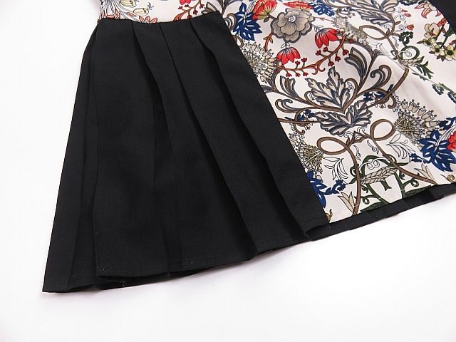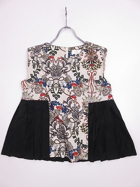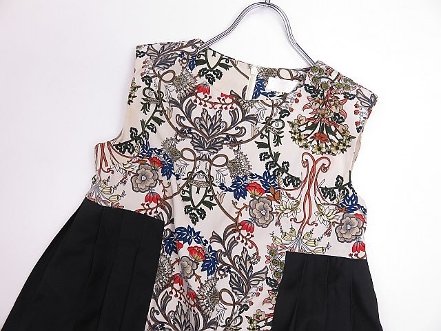 【送料無料】HARE ハレ ノースリーブカットソー 花柄 プリーツ 黒  M相当