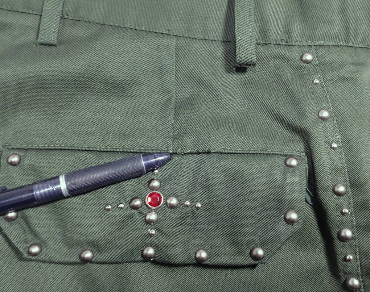 両サイド・全てのポケットフラップにスタッズが施してあります