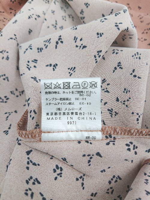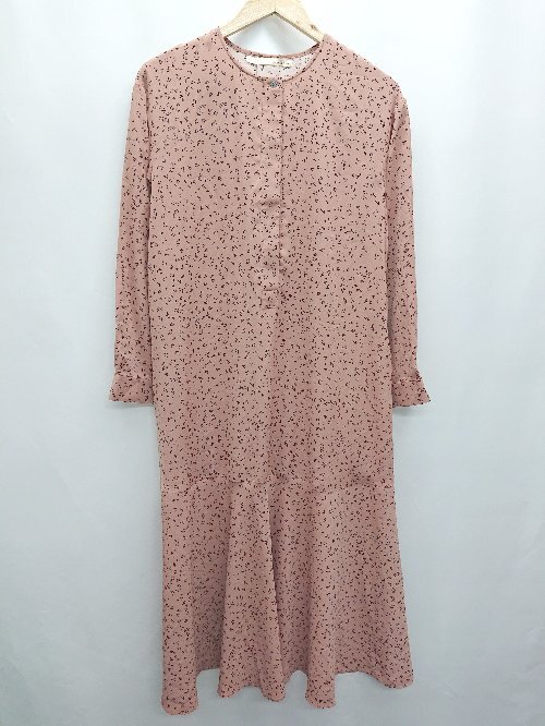 ◇ MELROSE claire メルローズクレール 総柄 長袖 膝下丈 ワンピース 表記なし ピンクベージュ系 ブラック レディース P