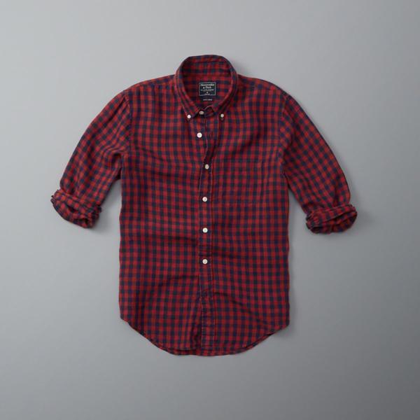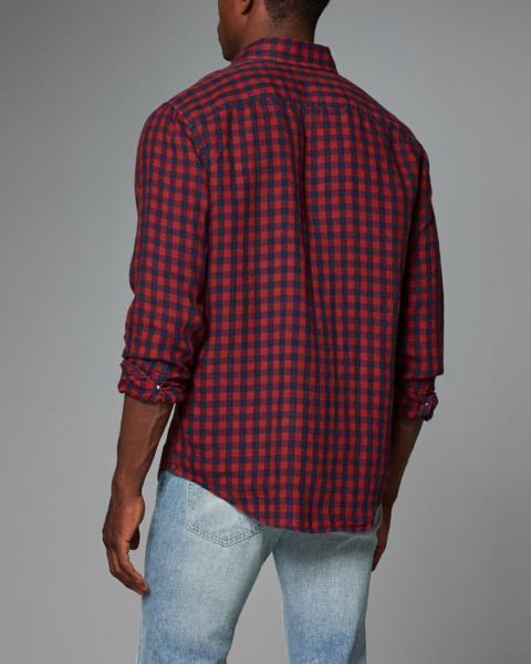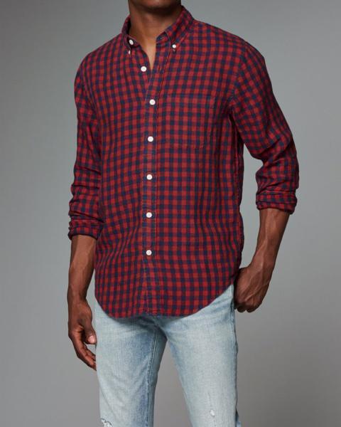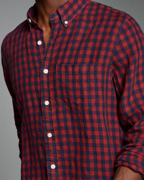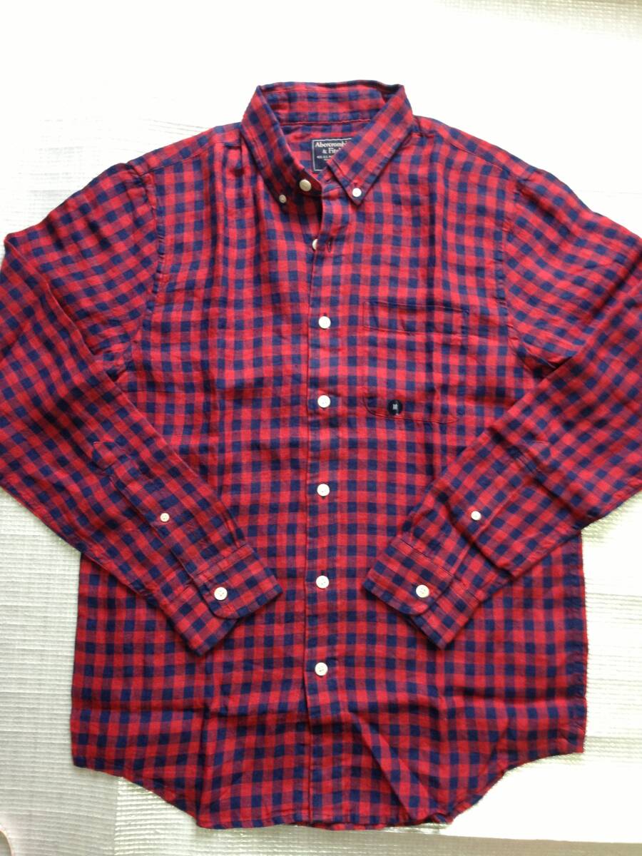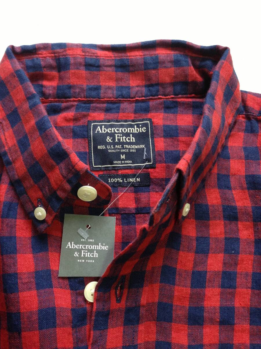 【新品】Abercrombie&Fitch アバクロ リネンボタンダウンシャツ M レッド