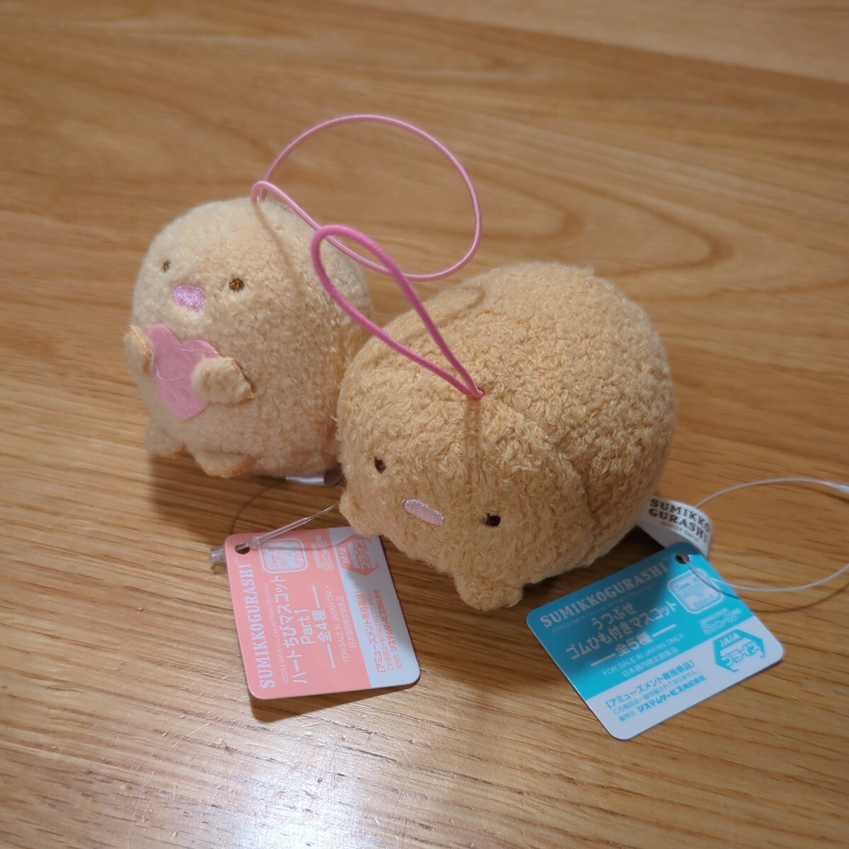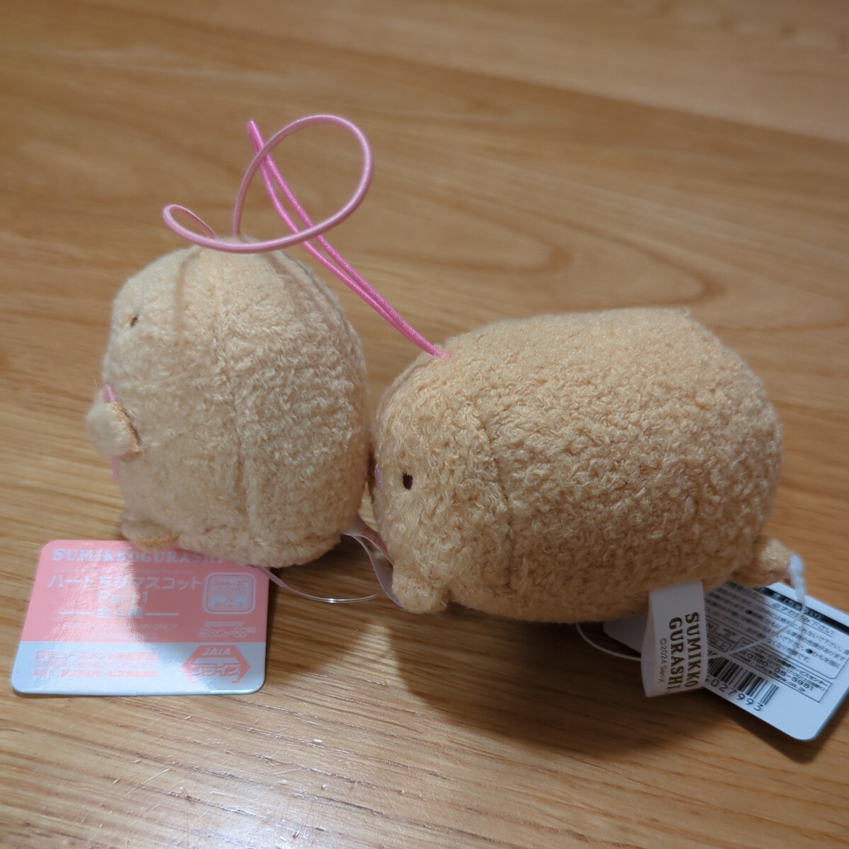 【新品未使用】非売品 すみっコぐらし とんかつ ゴムひも付きマスコット うつぶせ ハートちびマスコット 2種セット ストラップ ぬいぐるみ