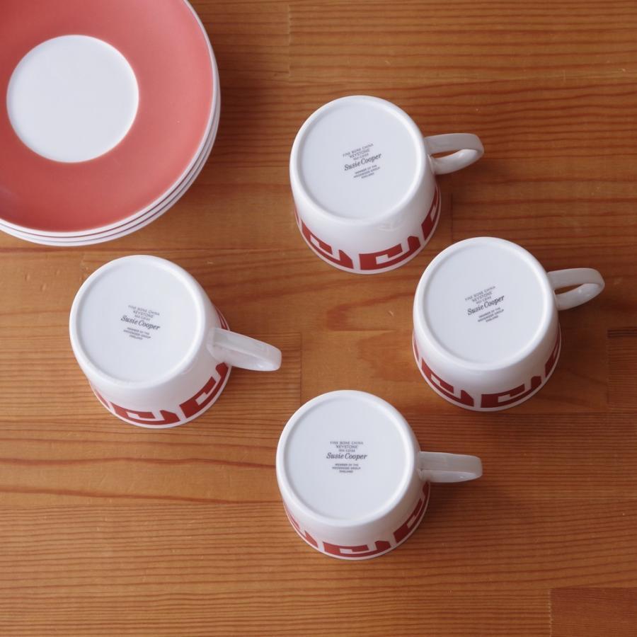 Susie Cooper スージークーパー キーストーン 赤 レッド Keystone Red コーヒーカップ ソーサー #220321-1~4 ヴィンテージ アンティーク