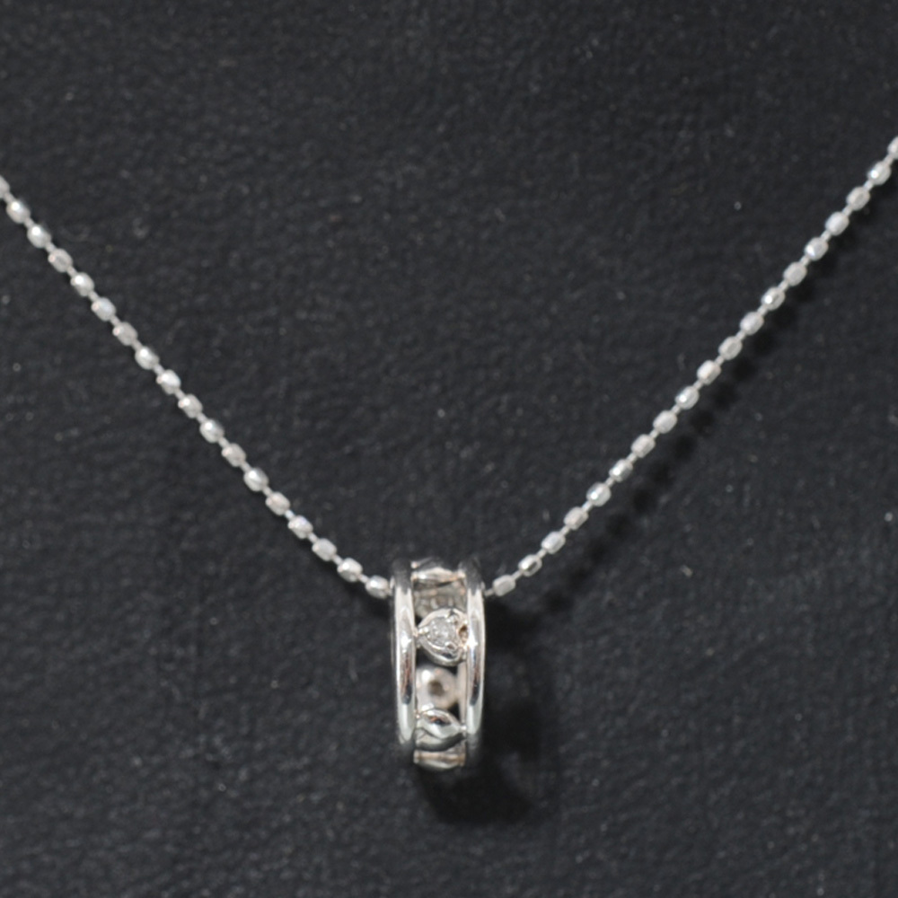 ● 【I05】 K10WG ホワイトゴールド リング デザイン メレダイヤ ペンダントネックレス 中古美品
