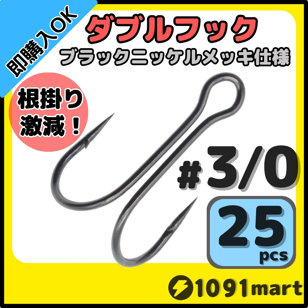 根がかり対策、ボトム、ストラクチャー攻略に効果抜群!メタルバイブやバイブレーションプラグ等のダブルフックチューンに最適!(標準的な縦アイのルアーに使用する場合はスプリットリングを使用せずに装着して下さい)高炭素鋼のダブルフックにブラックニッケルメッキを施したフックで、ソルトにも使えます。※使用後は水洗いして乾燥させる事でフックが長持ちします。
