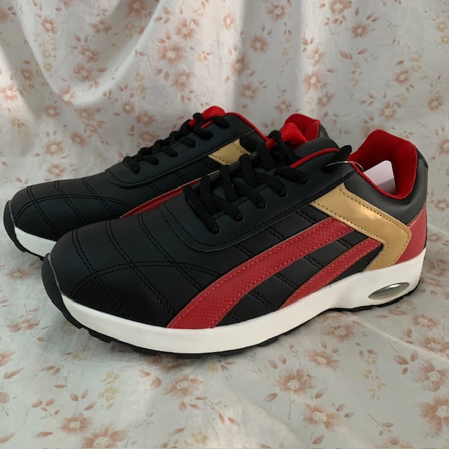 メンズ◇軽量スポーティシューズ ブラック/レッド【25.0】エアクッション仕様 ☆新品在庫品  《管理93945》