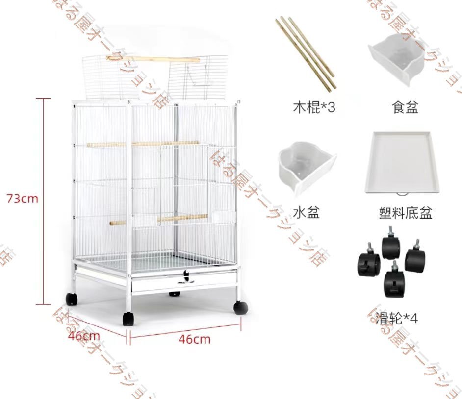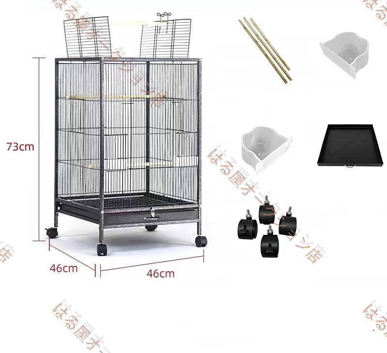 【セット内容】:ケージ本体、引き出しトレー、止まり木、 餌入れ