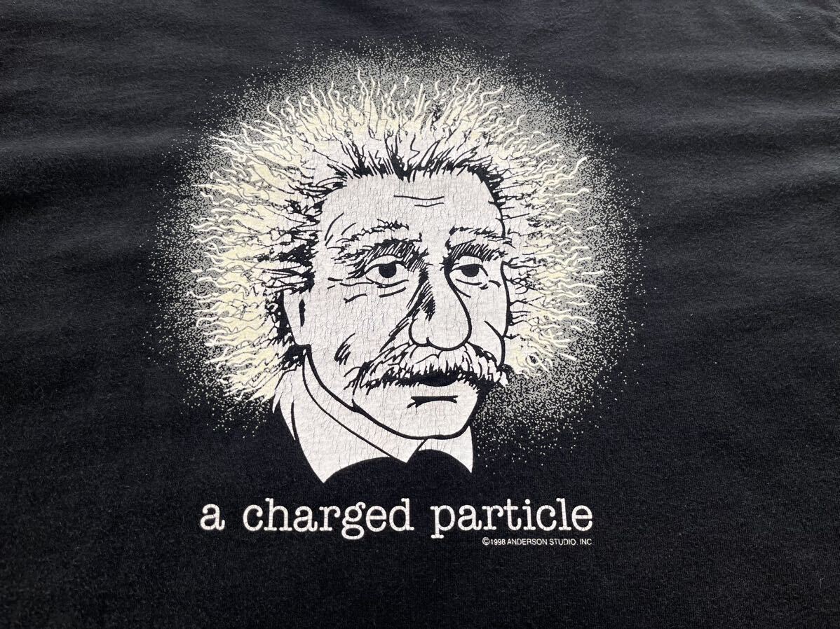 人気のアインシュタインデザインのTシャツになります。フロント汚れ、背面小穴あります。