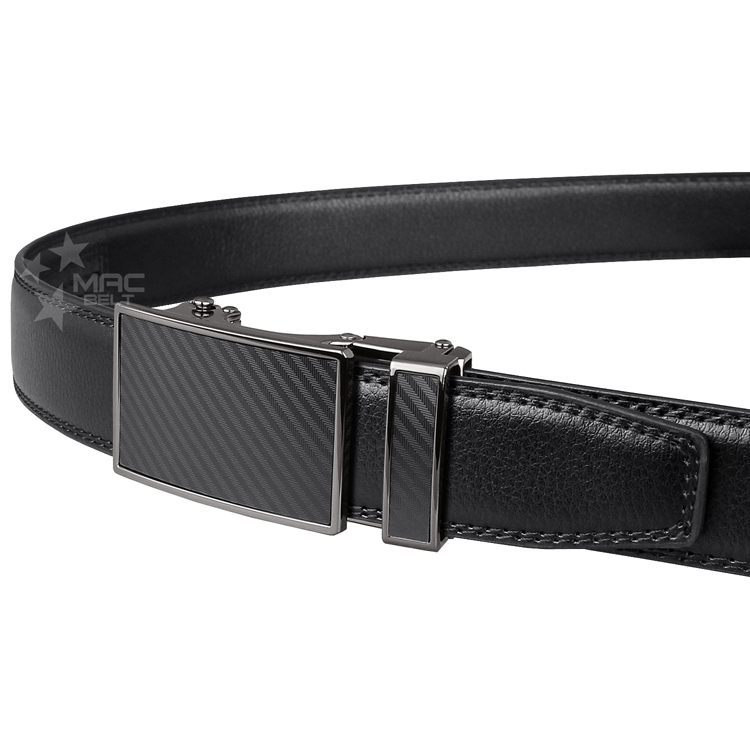サイズ調整はいつでもワンタッチで自由自在。快適レザーベルトです。