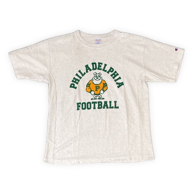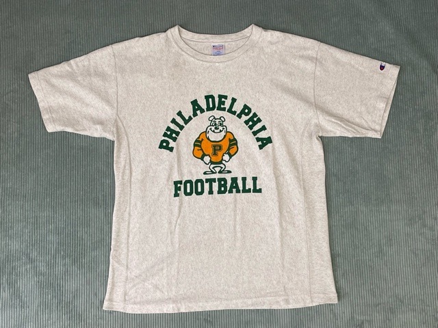 説明 | チャンピオン リバースウィーブTシャツ。 9.4オンス のヘビーウェイトボディ。 PHILADELPHIA FOOTBALL カラー染み込みプリント。 ヘインズブランズ ジャパン(株) 中国製 |