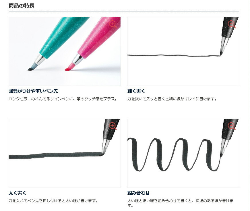 ロングセラーのぺんてるサインペンに、筆のタッチ感をプラス。