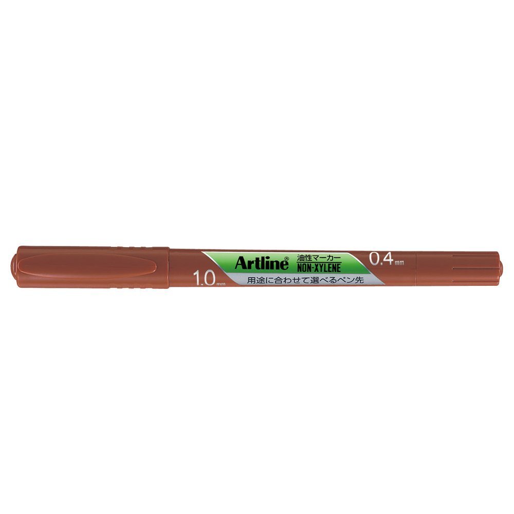 細く小さな文字を書くためのマーカー。細字と極細字、1本2役のツインタイプ。 人に優しいアルコール系溶剤のインキを採用。プラスチックや金属面に、小さな文字や細いラインが筆記できます。極細字のペン芯は、耐磨耗性に優れたプラスチックペン芯です。