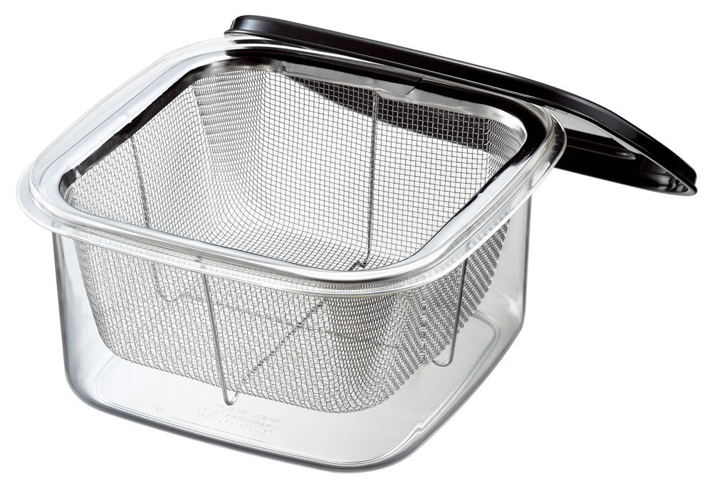 材質:本体:ポリメチルペンテン(TPX) フタ:ポリプロピレン樹脂 ザル:18-8ステンレス