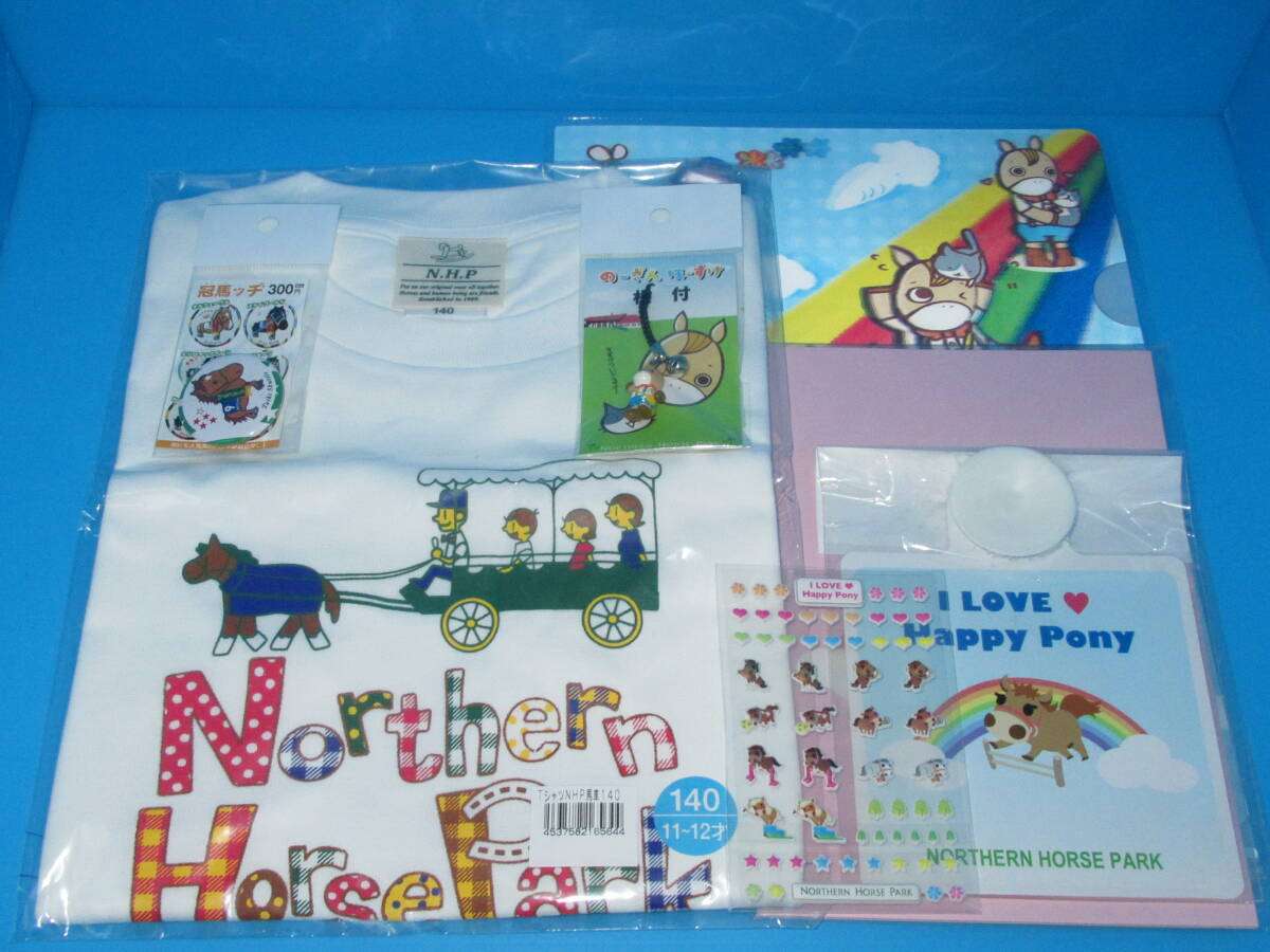 匿名送料無料 ★ノーザンホースパークグッズ詰め合わせ Tシャツ(140)/3Dクリアファイル/吸盤ステッカー/ タイキシャトル冠馬ッチ/シール