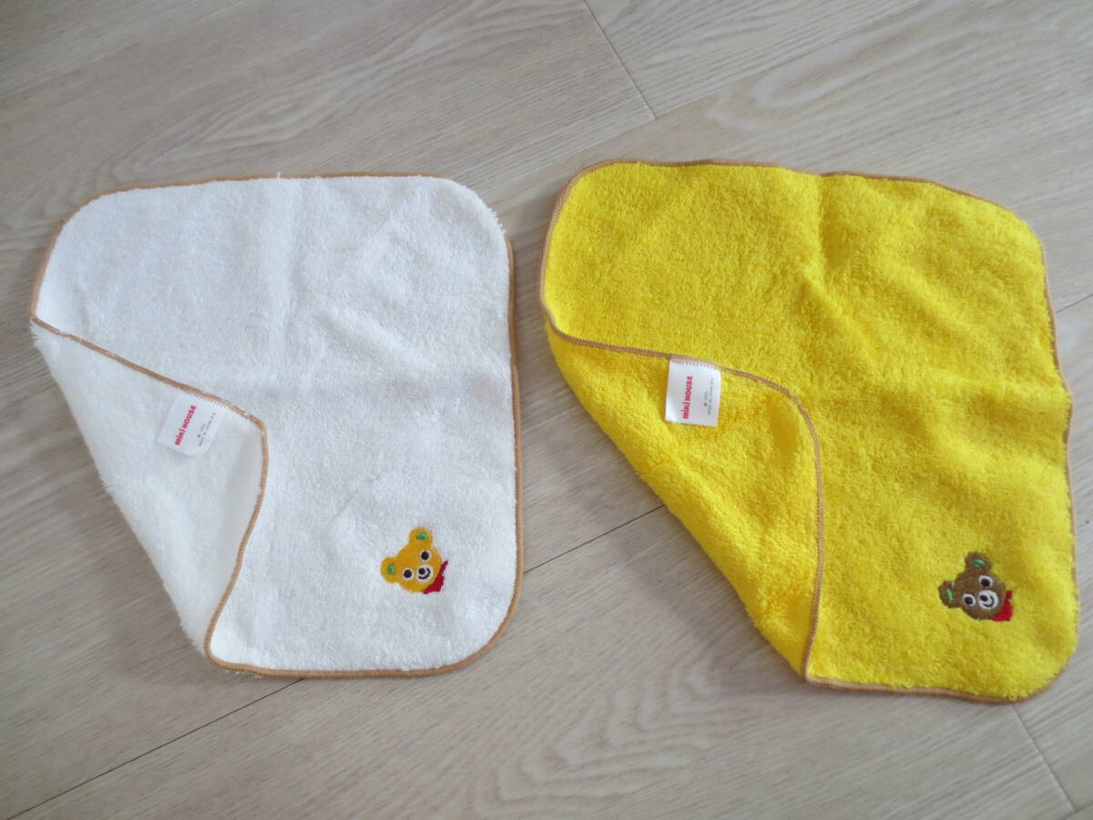 ★未使用 ミキハウス タオルハンカチ2枚セット 黄色&白 キッズ 日本製 男の子 女の子