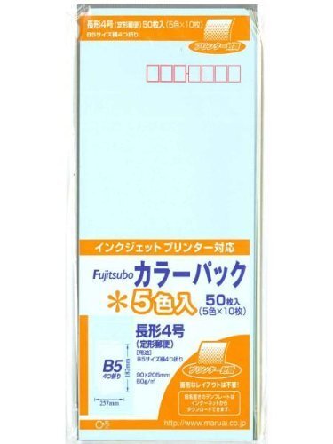 B5サイズ横4つ折りに最適な5色入カラー封筒です。