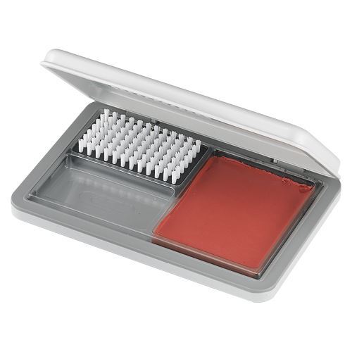 | 軟質の清掃用ゴムとブラシの併用により、印鑑やゴム印の印面を傷めず簡単に、紙粉、ホコリ等の汚れを取り除くことができます●規格:大型●外寸:横120×縦73.8×厚15.9mm●材質:蓋/枠/底=再生ABS/PBT製。 |