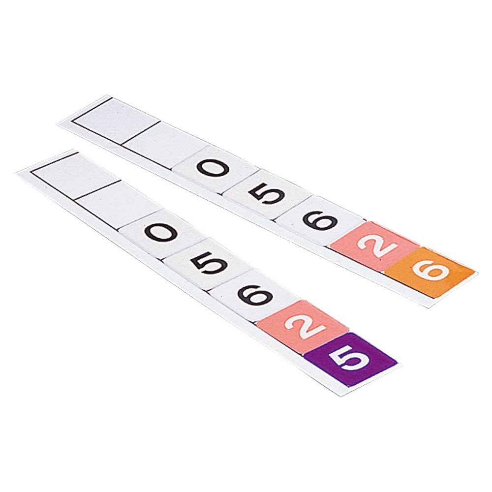 サウザンドカルテシステム・外来カルテバインダー用カラーナンバーラベルです。ラミネート加工で色あせが少なく、カラー分類機能を長く保ちます。入り数:1袋=250片(単番号)