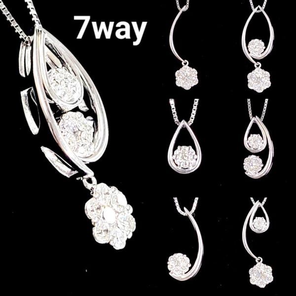 【製造大卸☆最安値】7way! 天然 ダイヤモンド 18金 K18 WG ホワイトゴールド ペンダント ネックレス 【鑑別書付】