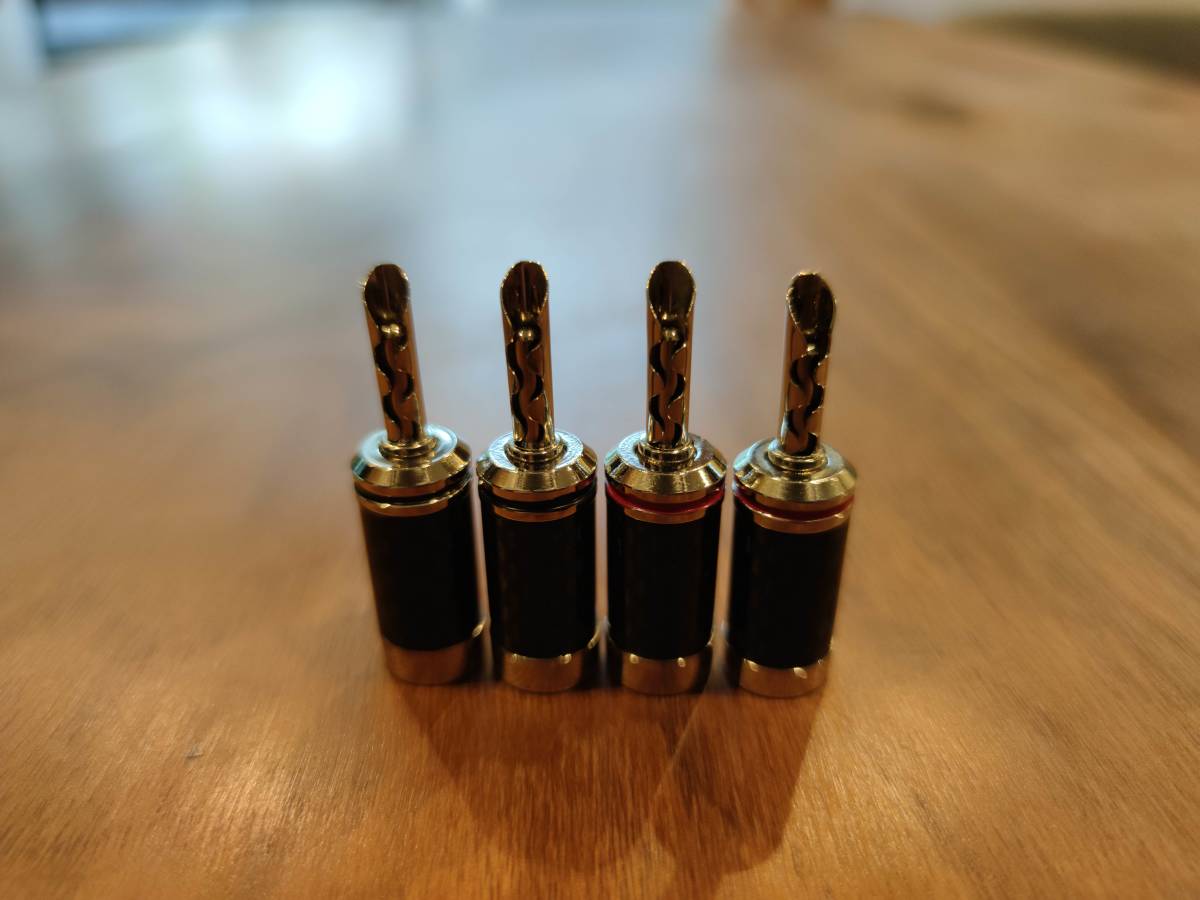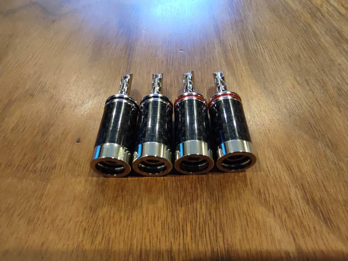 商品説明 | ●ご覧いただきまして、ありがとうございます● ブラックカーボン ロジウムコート NORDOST タイプ バナナプラグ スーパーハイエンド 新品 未使用 4個セットの出品です。 ・接続用六角レンチを付属させて頂きます。 ・内径は5mm(~12AWG対応)サイズで上下2本の六角スクリューでロックしますので、従来のネジ締め式より強いトルクが掛かり、線材をガッチリとロックすることが可能です。 ・先端部分が真円状の櫛形になっており、アンプ・スピーカーとの接点に全方向でホールドしますので、折れにくく音質向上効果が狙えます。 ・カラーはカーボン・ブラックボディーで、レッド・ブラックラインの各2本で、4個セットになります。 ・便利なセット販売になります。 品名: ブラックカーボン ロジウムコート NORDOST タイプ バナナプラグ スーパーハイエンド 仕様: ~12AWG対応 バナナプラグ 状態: 新品(加工時に出来た小傷等につきましてはご了承ください) 本商品の発送につきましては、同梱発送にも対応しております。 |