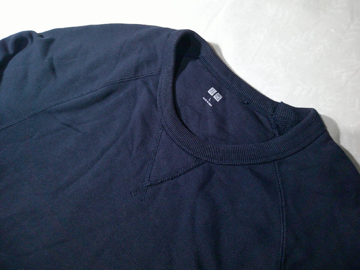 ssy9116 ユニクロ UNIQLO 長袖 トレーナー スウェットシャツ ダークネイビー ■ 無地 ■ クルーネック ラグランスリーブ Lサイズ