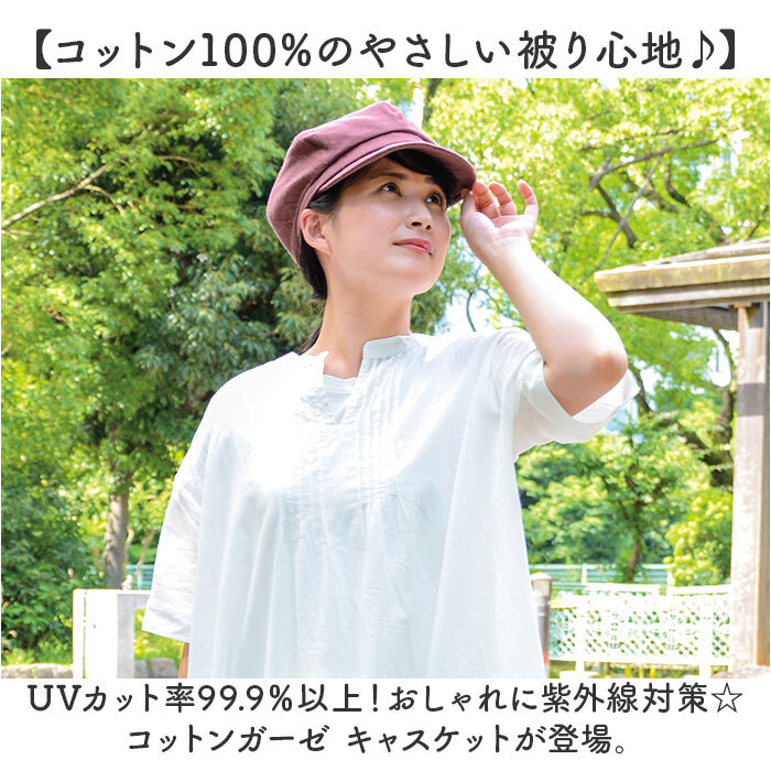 商品説明 | ・・【コットン100%のやさしい被り心地♪】 ・UVカット率99.9%以上!おしゃれに紫外線対策☆コットンガーゼ キャスケットが登場。 ・【紫外線、熱中症対策の強い味方】 ・UVカット率99.9%以上の生地を使用。キャスケットを被って、お顔も頭皮もしっかりブロック◎ ・【コットン100%の生地が魅力】 ・触れる部分はすべてコットン仕様。お肌が敏感な方でも安心。チクチクしにくい柔らかタッチ。 ・【今治タオルブランドの認定商品】 ・日本有数のタオル産地、今治で作られた確かな品質。吸湿性にも優れ、汗をかいても快適! ・【通気性バツグンでムレにくい】 ・コットンの繊維は中が空洞になっているので、風通しが良い◎長時間被ってもストレスフリー! ・【自転車もOK!しっかりフィット】 ・深めに被るとフィット感がUP!風が強い日や、自転車に乗るときも安心の作り。 ・【折りたたんで持ち運べる】 ・コンパクトに折りたためるので、バッグに入れてもかさばらない◎おでかけのお供に。 ・【合わせやすく小顔効果も◎】 ・シンプルで上品な印象なので、カジュアルやキレイめにもマッチ。被るだけで小顔効果も! ・【幅広いシーンで大活躍☆】 ・外遊びが多いママや、ガーデニング、キャンプなどのレジャー、ちょっとお買い物も全部OK! ・【手洗いOKなので清潔に!】 ・汚れが気になったら、いつでもお家で手洗いOK!清潔さをキープして長く愛用できる♪ |
