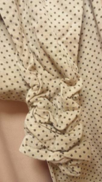 ◆ナチュラル可愛いベージュ地にブラウン水玉ドット柄♪裾がクシュクシュ