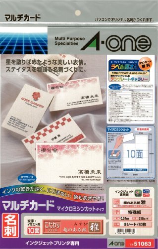 | ◆インクジェットプリンタでの印字適性に優れた名刺用紙です。◆ミシン目部分を山折り谷折りするだけで名刺サイズに切り離せるマイクロミシンカットタイプです。◆個性的な名刺やショップカード作成に最適な星を散りばめたような美しい表情の用紙です。 / ■ 仕様 ■シートサイズ:A4判(210×297mm)一片サイズ:91mm×55mm面付:10面 2列×5段厚み:210g/m2(0.24mm)材質:特殊紙用紙特性:マット、片面印刷対応プリンタ:インクジェットプリンタ(染料インク、顔料インク) / ※顔料インクでは、表面素材の特性上、インクが乾きにくいので、印刷面にはできるだけ触れないようにしてください。※印刷設定につきましてはメーカーホームページでご確認下さい。 |
