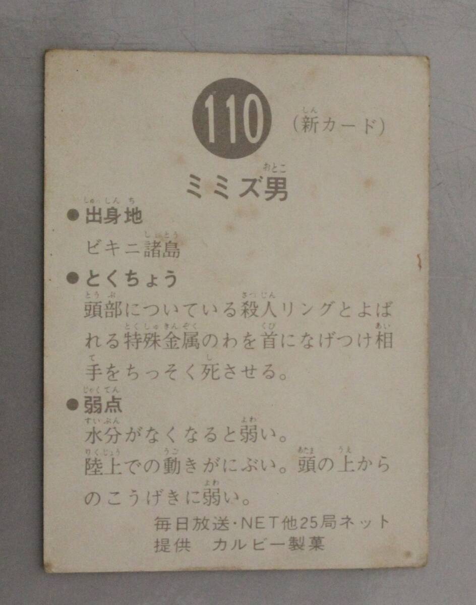 カルビー製菓 仮面ライダーカード No.110 ミミズ男 裏25局ネット