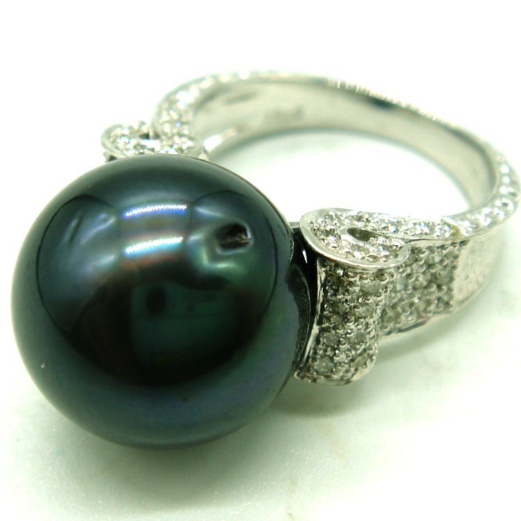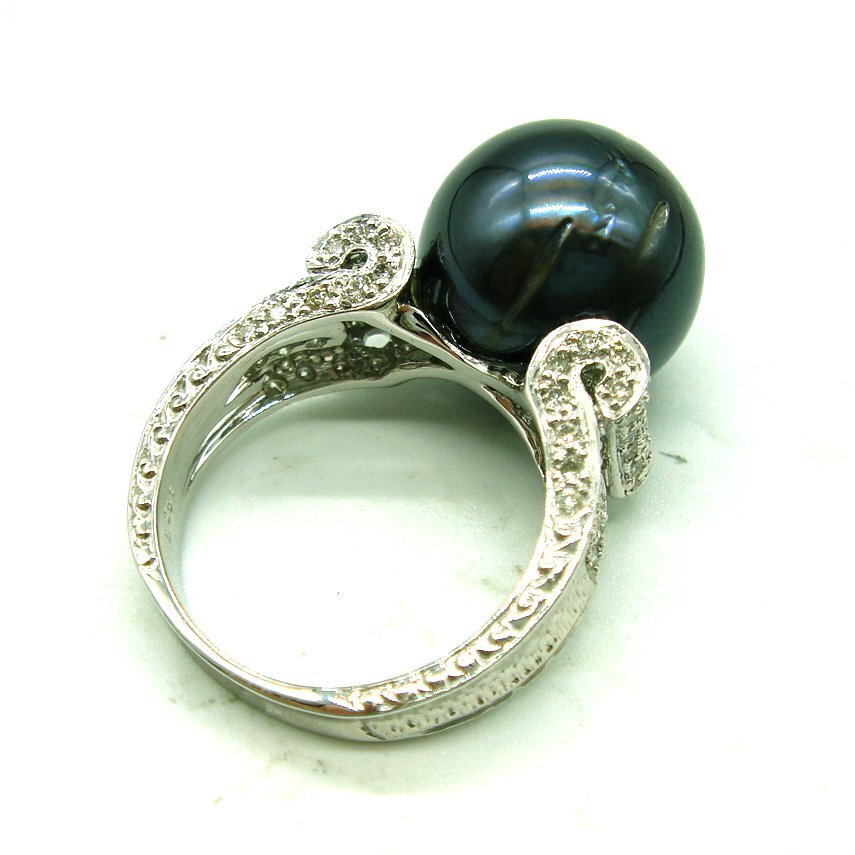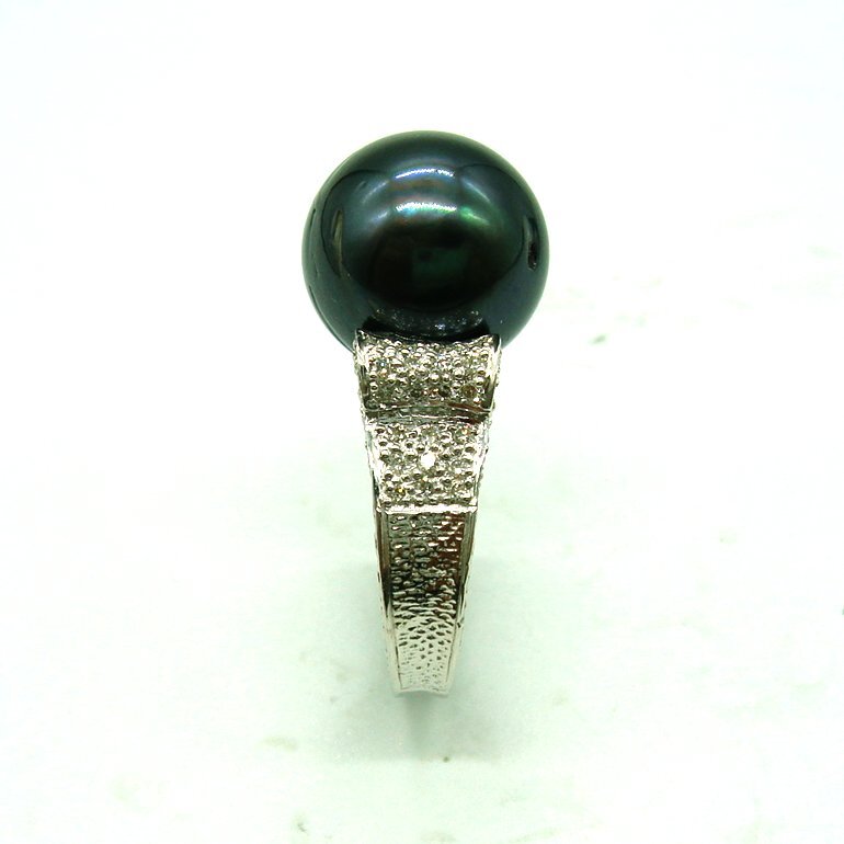 R938:K18WG 南洋黒蝶真珠 ダイヤ リング(#12強)