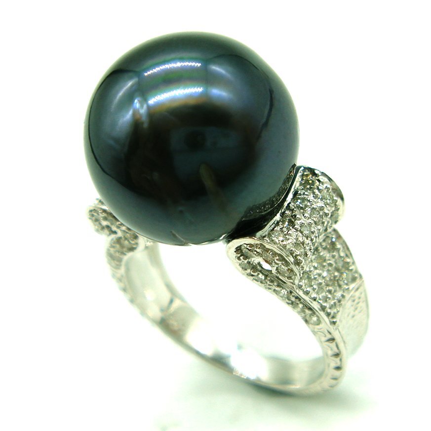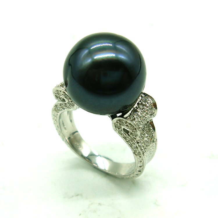13.5mmアップの黒蝶真珠のボリュームに思わず目を惹かれるリングです。