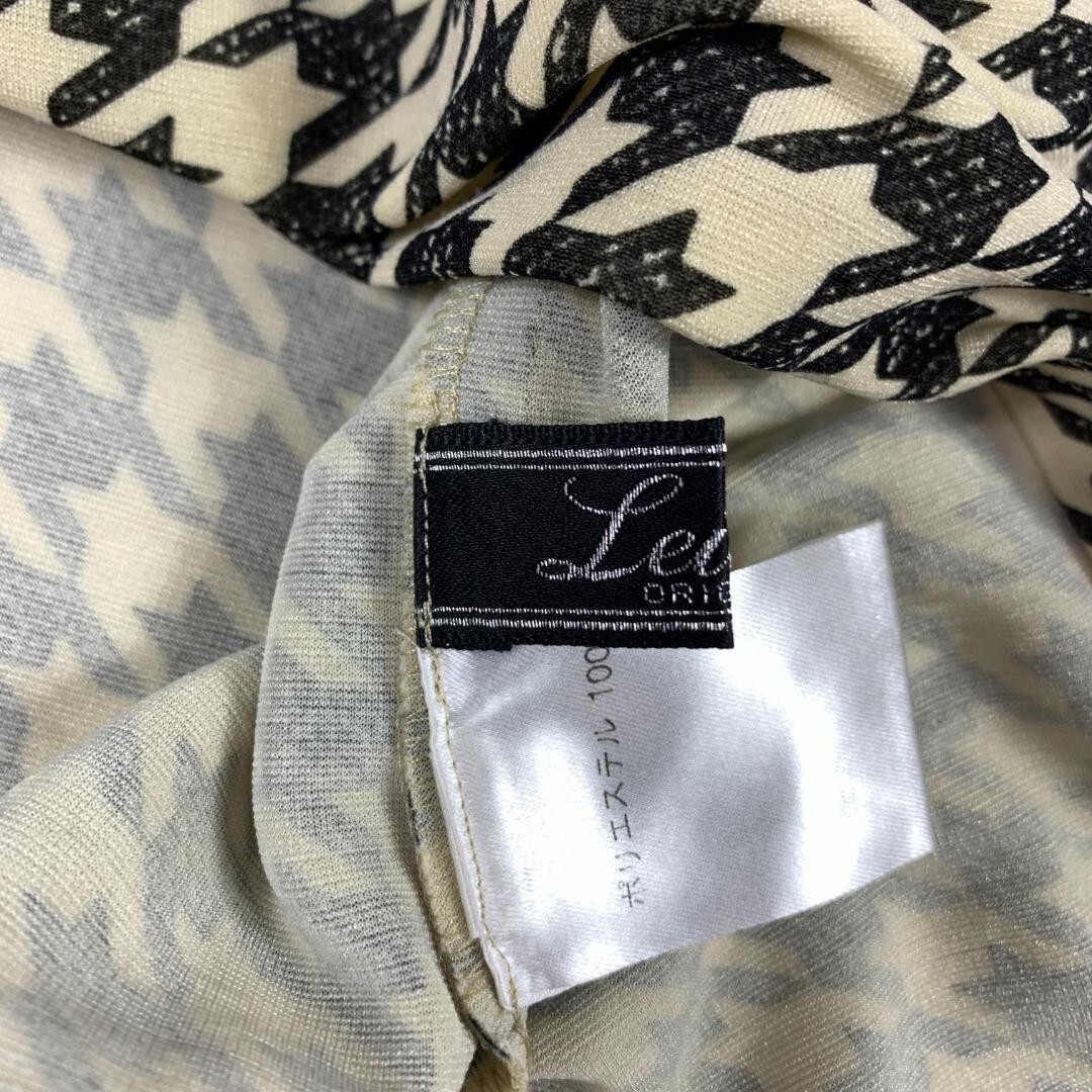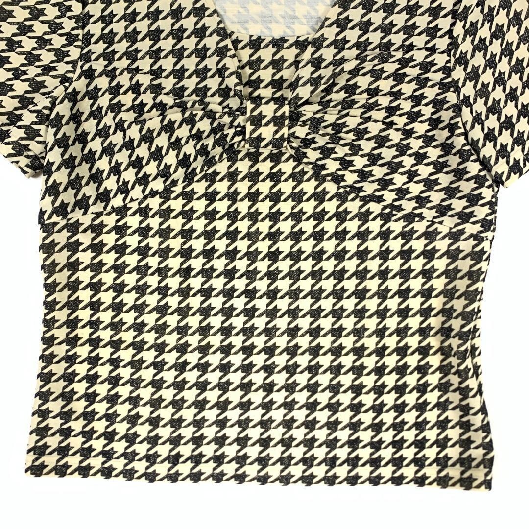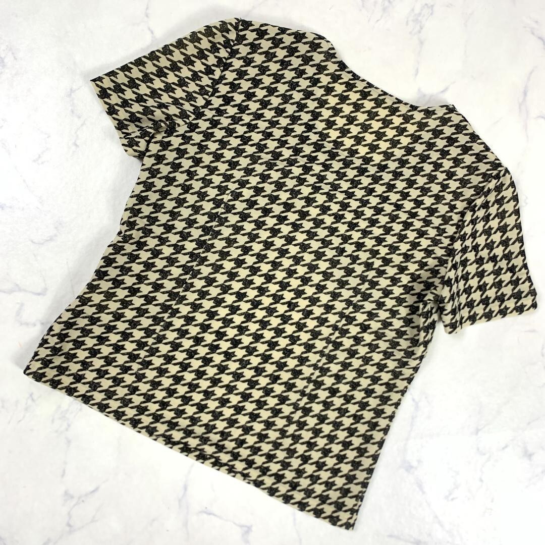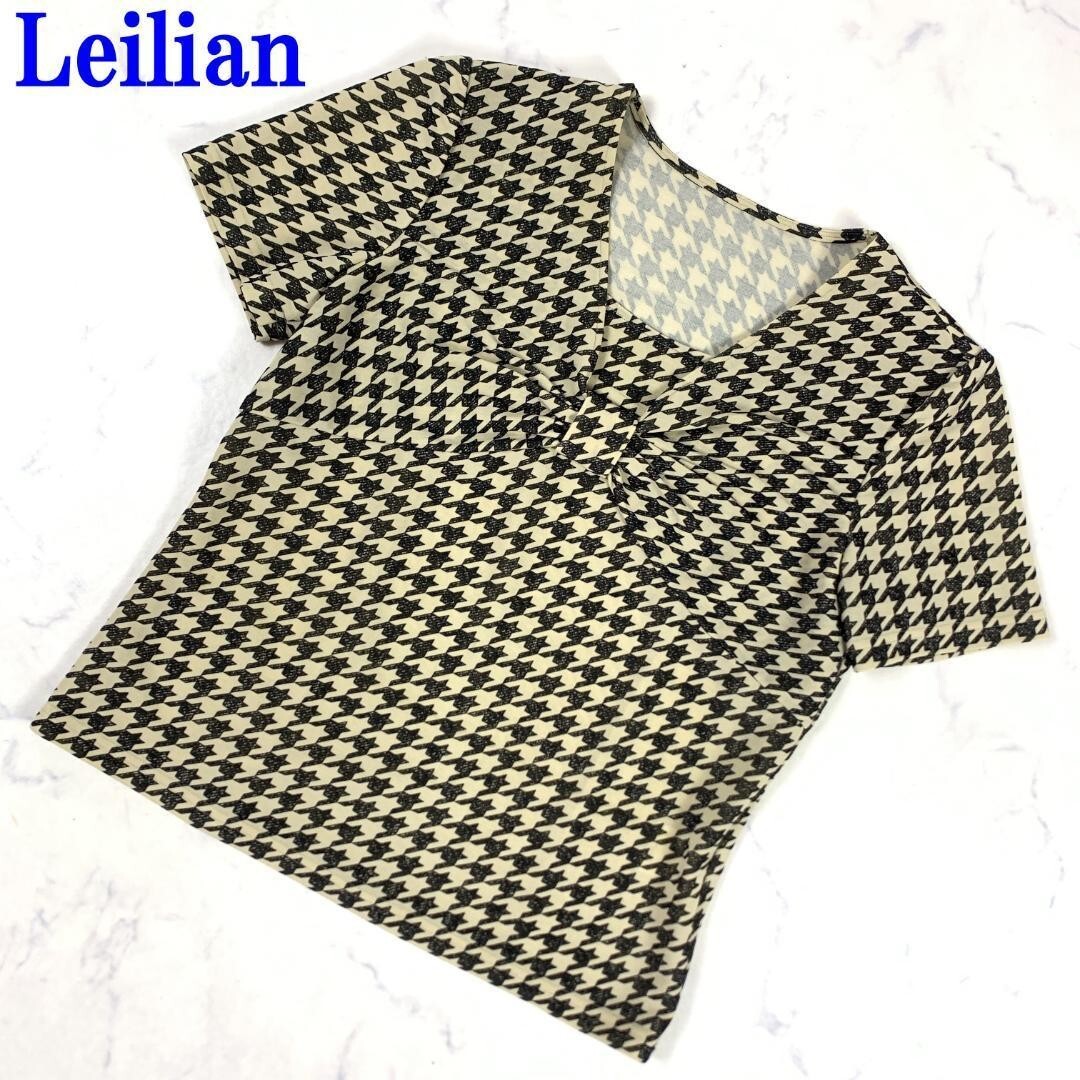Leilian レリアン リボンデザイン千鳥柄半袖カットソーカジュアル フロントリボンモチーフ ポリエステル100%ベージュ9 C748