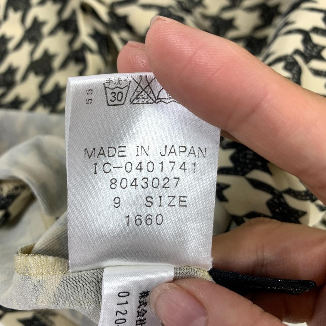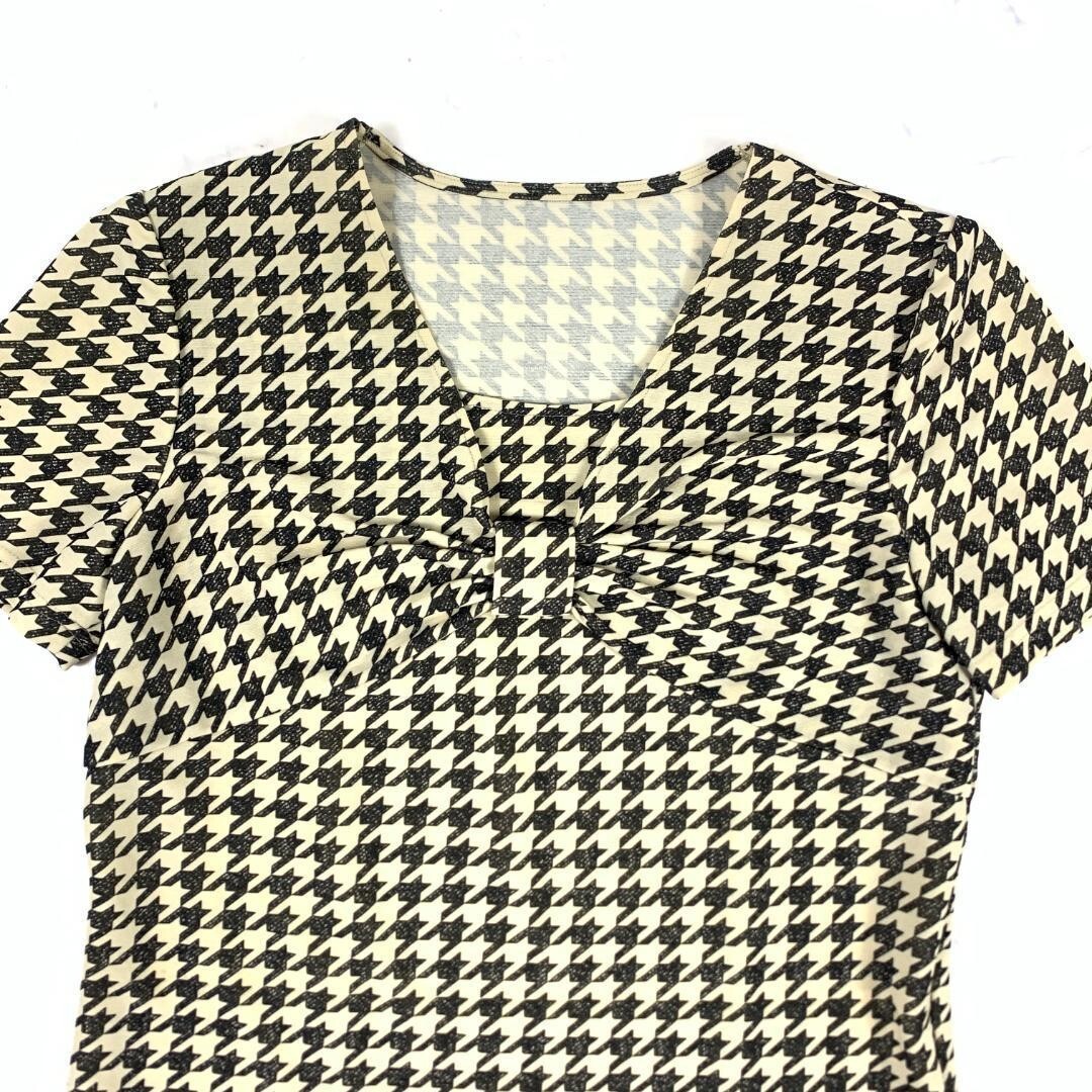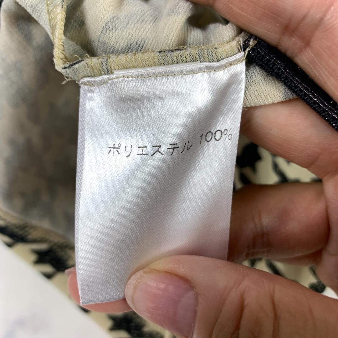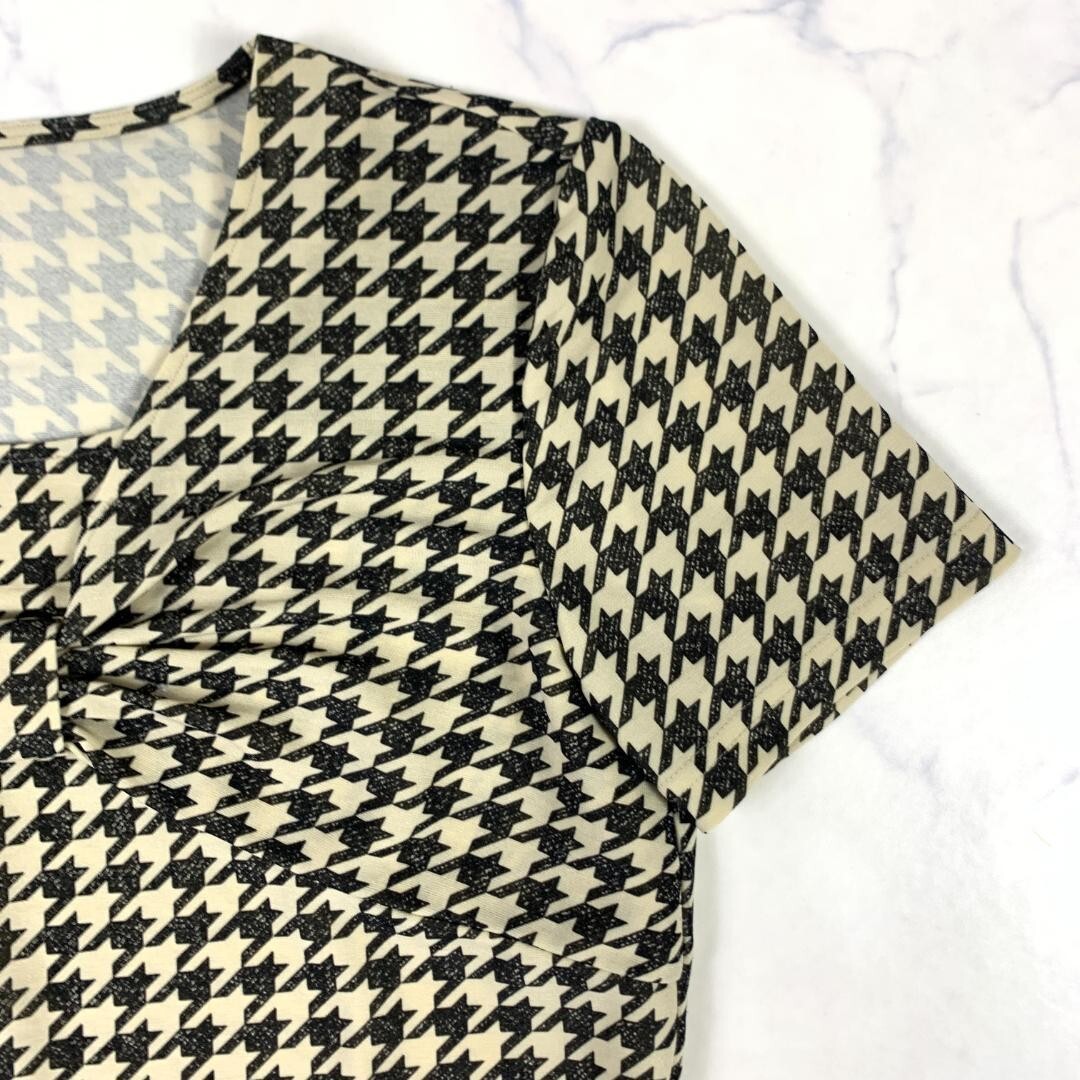 Leilian レリアン リボンデザイン千鳥柄半袖カットソーカジュアル フロントリボンモチーフ ポリエステル100%ベージュ9 C748