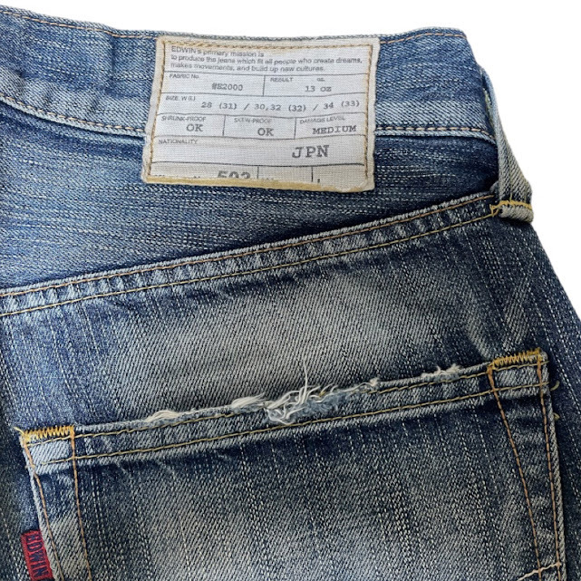 EDWIN 53503 ユーズド加工 デニム 32×32 日本製 エドウィン |