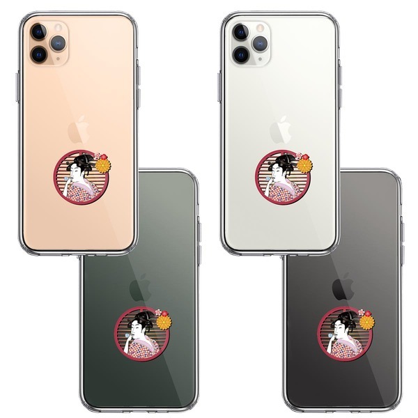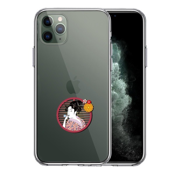 iPhone11 ケース クリア 浮世絵 女 スマホケース 側面ソフト 背面ハード ハイブリッド